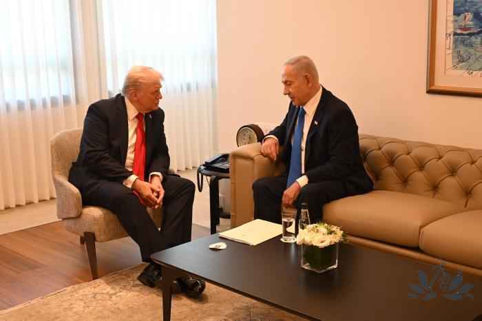 当天,内塔尼亚胡在社交媒体平台X上发布了多张关于特朗普到访的图片,其中包括他向特朗普赠送金色鸽子雕塑的图片。